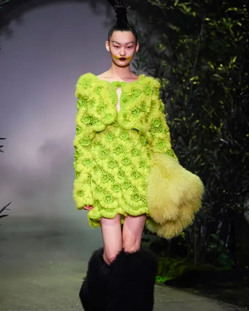 El sÍmbolo de la Generación Z, Angel Chen, presentó su colección «Daughter of the Dragon» en un bosque de bambú verde oscuro.