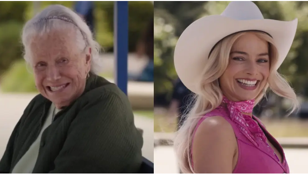 La escena en la que Margot Robbie se sienta en la banca con una señora de edad adulta en la vida real, fuera del mundo de Barbie.