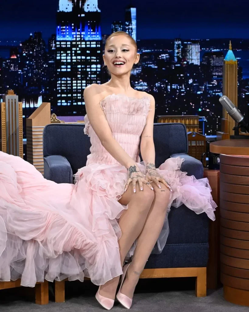 ARIANA GRANDE EN JIMMY FALLON CON VESTIDO GIAMBATTISTA VALLI
