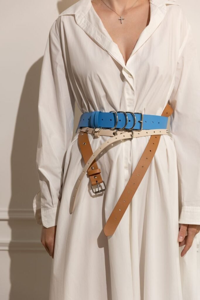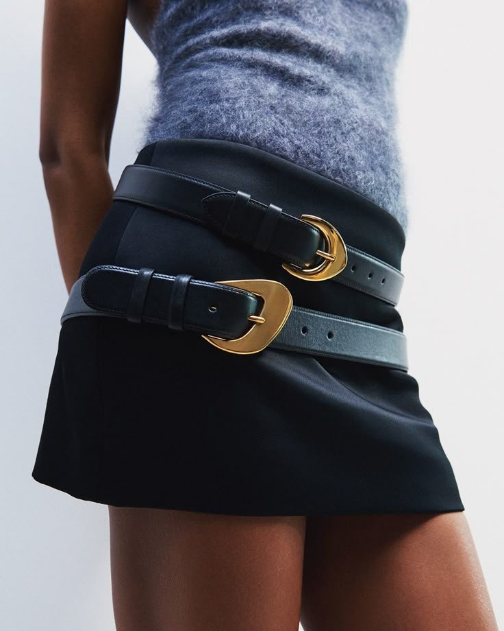 El ‘belt stacking’ consiste en sobreponer dos o más cinturones en un solo look, logrando una estética maximalista con un twist edgy. La clave está en mezclar grosores, materiales y tonalidades para crear un efecto visual llamativo. Cinturones de piel estructurado con detalles metálicos, versiones extra largas que cuelgan sobre el cuerpo y combinaciones de texturas inesperadas hacen de esta tendencia un statement absoluto.