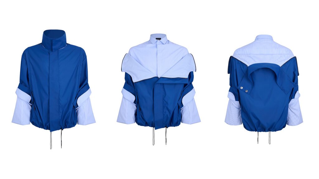 En el centro de esta propuesta están la Haven Jacket y la League Jacket, dos modelos que encarnan un futuro donde la ropa se transforma, muta y acompaña. Son piezas creadas para quienes entienden que el guardarropa actual no puede ser estático: necesita dialogar con el día, el clima, el plan y la energía de quien lo lleva.