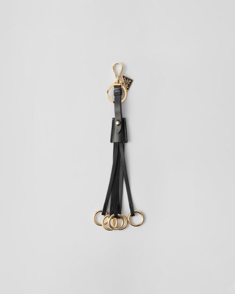 Los charms de Prada son el equilibrio perfecto entre lo útil y lo cool. El Pop Strings bag charm explora la geometría y el color; el Teddy bag charm aporta un giro divertido y cute; mientras que el Leather bag charm and keychain eleva lo práctico con el sello de la casa.