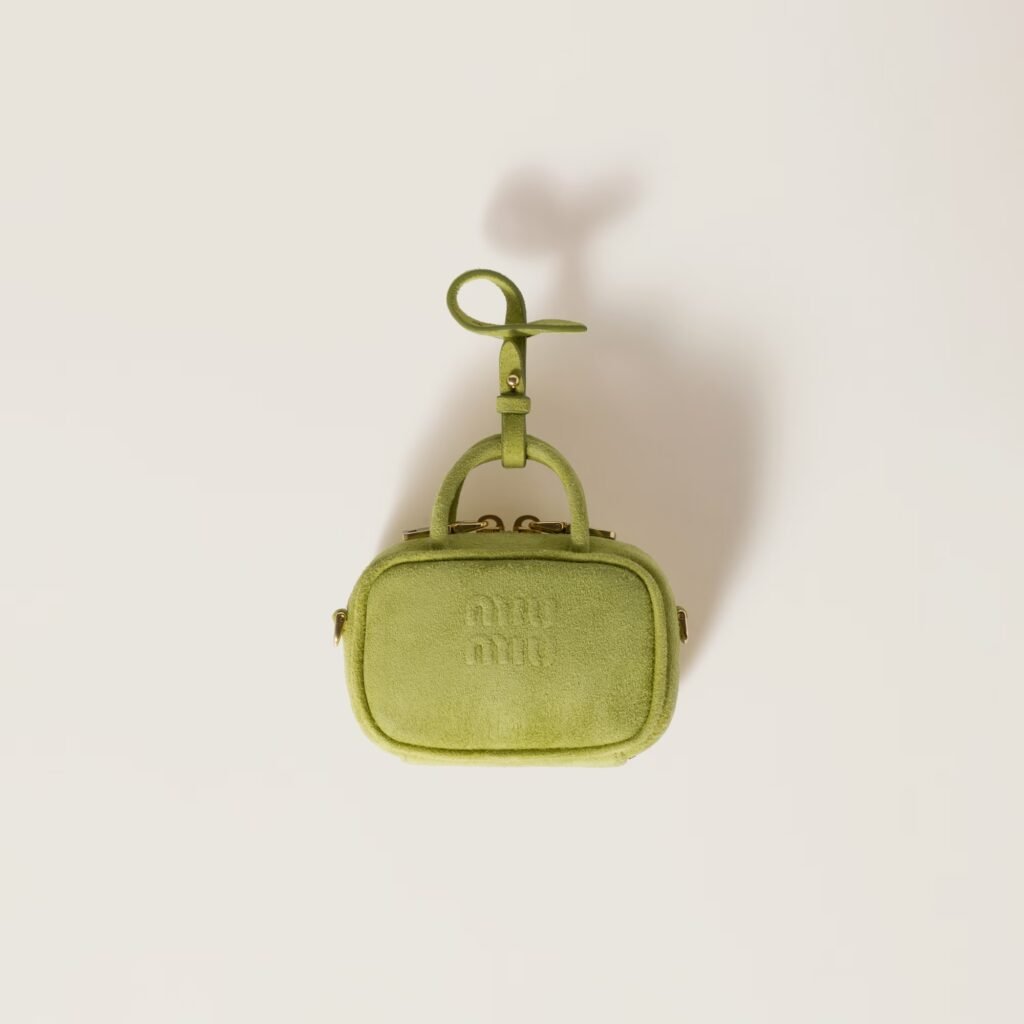 Miu Miu juega con el estilo retro en sus charms para bolsas. El Beau suede micro-bag es una versión mini de sus bolsa más cool, perfecta para colgar en cualquier asa. El Leather, cord and metal trick mezcla texturas de una forma inesperada, mientras que el Nappa leather trick es perfecto para quien busca un charm más discreto.