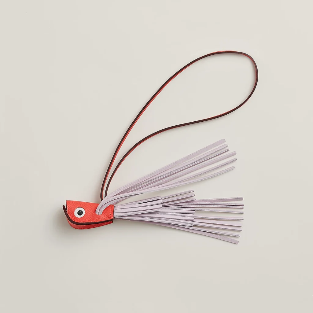 Cuando se trata de charms para bolsas, Hermès siempre lleva la delantera. El Rodeo PM charm es uno de los más icónicos, con su silueta de caballo en piel multicolor característico de la marca.El Poisson charm, inspirado en el movimiento del mar, y el Chouette charm, una lechuza en piel que suma carácter y detalle.
