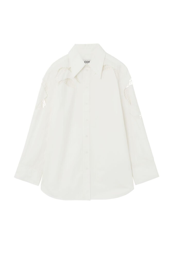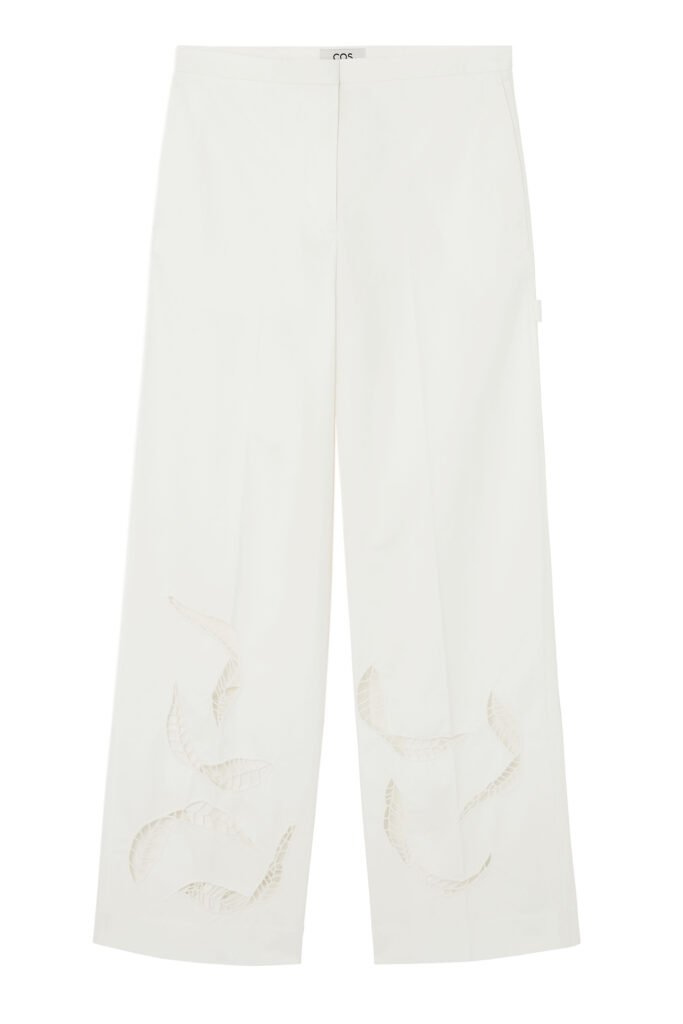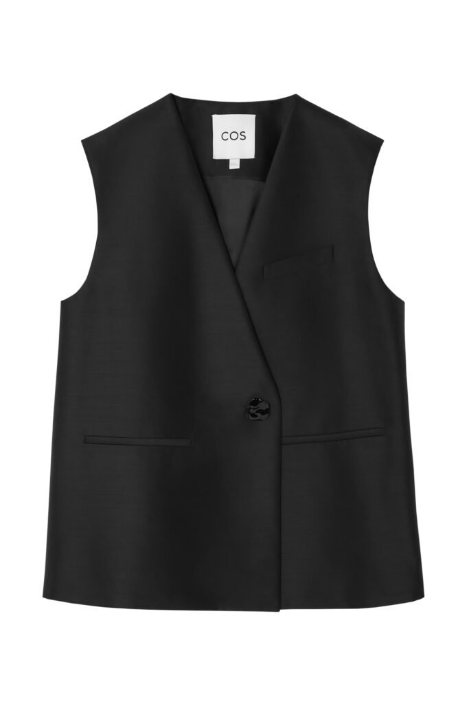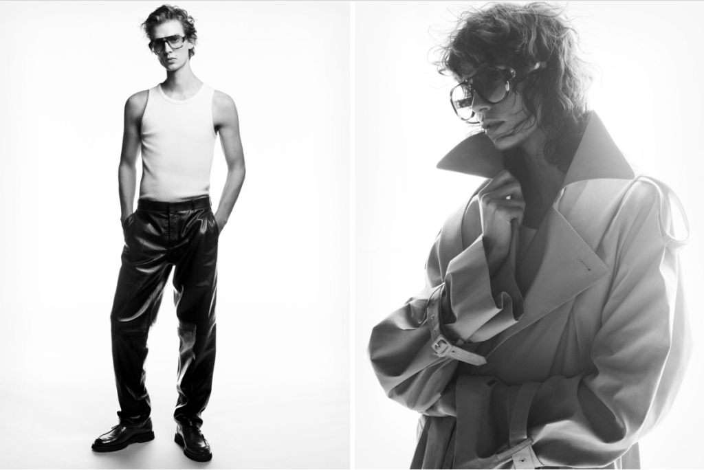 Los accesorios son de gran tamaño: un bolso de piel con un perfil holgado y relajado se convierte en el centro de atención, complementado por una selección de gafas de sol COS × LINDA FARROW inspiradas en la nostalgia, que completan el look de la temporada.