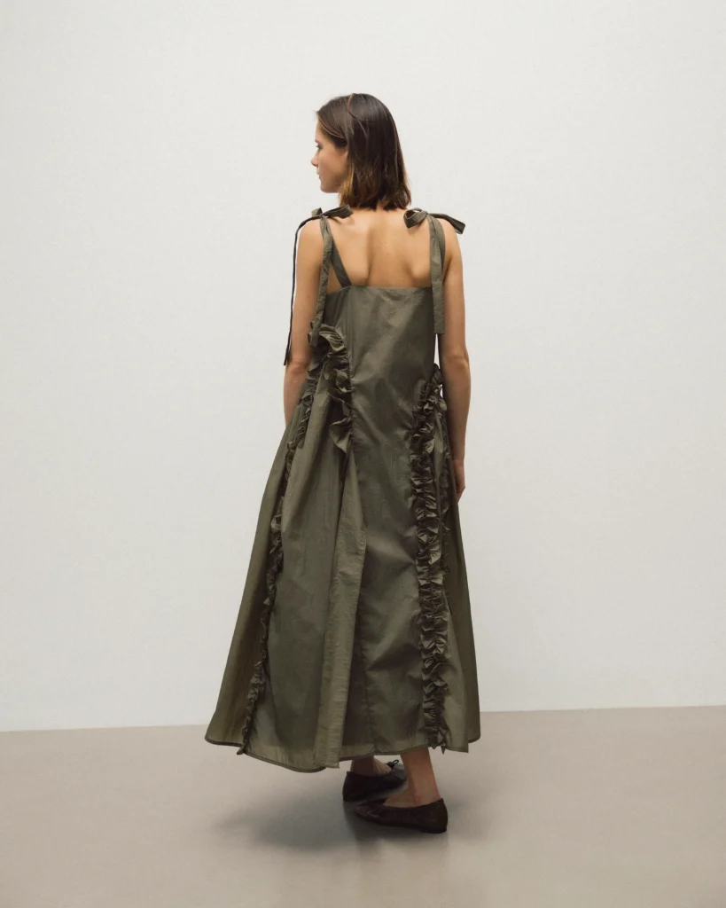 La firma danesa ha logrado un balance perfecto entre el minimalismo escandinavo y el romanticismo de cottagecore. Sus vestidos largos en tonos neutros y tierra, las blusas fluidas y los olanes estructurados la convierten en una de las opciones más sofisticadas dentro de esta estética.