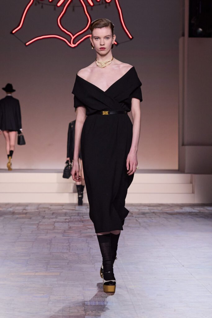 Preciosos vestidos, a veces muy ligeros, dejaban entrever la lencería, elemento esencial del conjunto, mientras que los bordados evocaban los códigos característicos queridos por el modisto fundador: la estrella, el trébol y la abeja. Un prodigioso abanico de posibilidades.