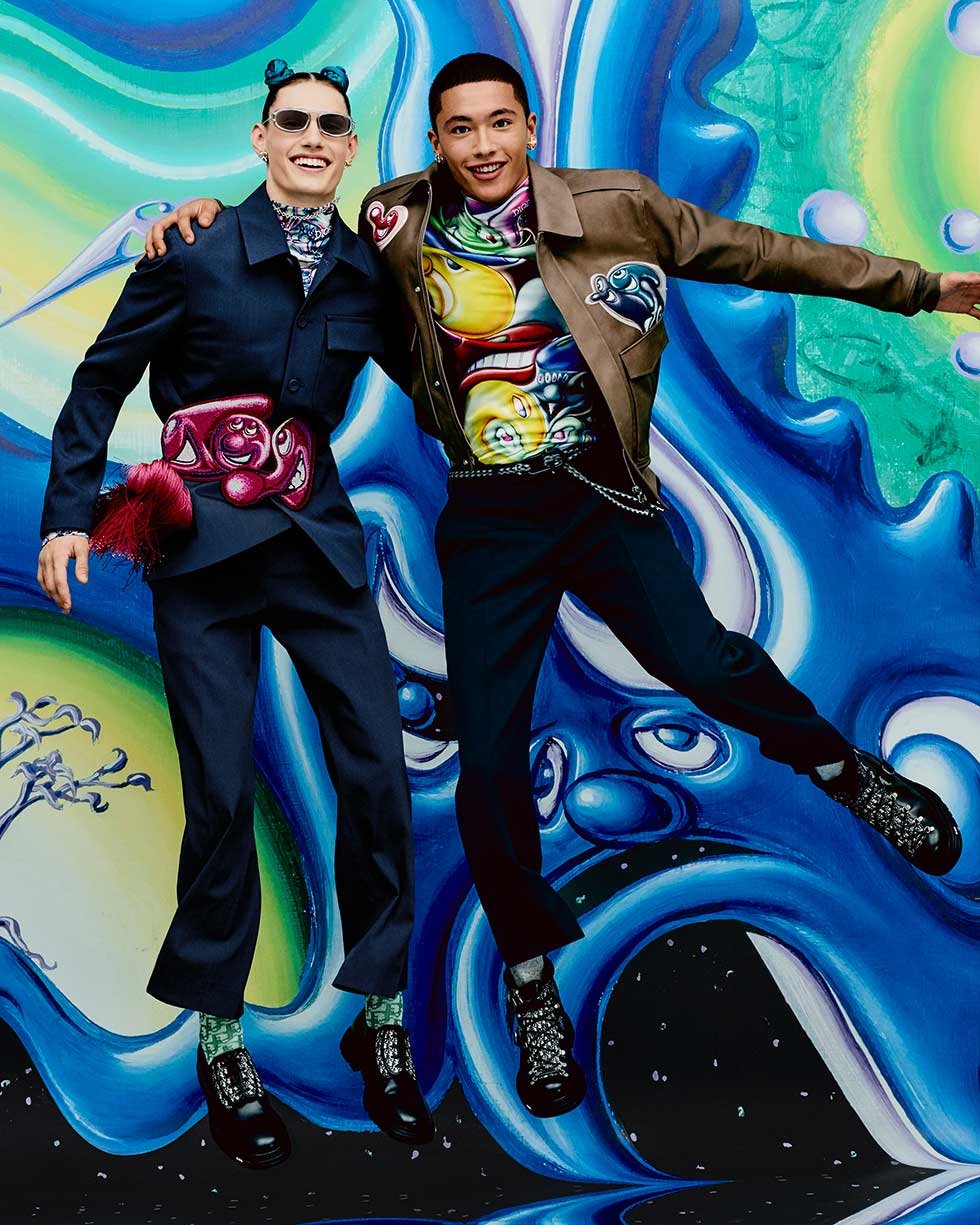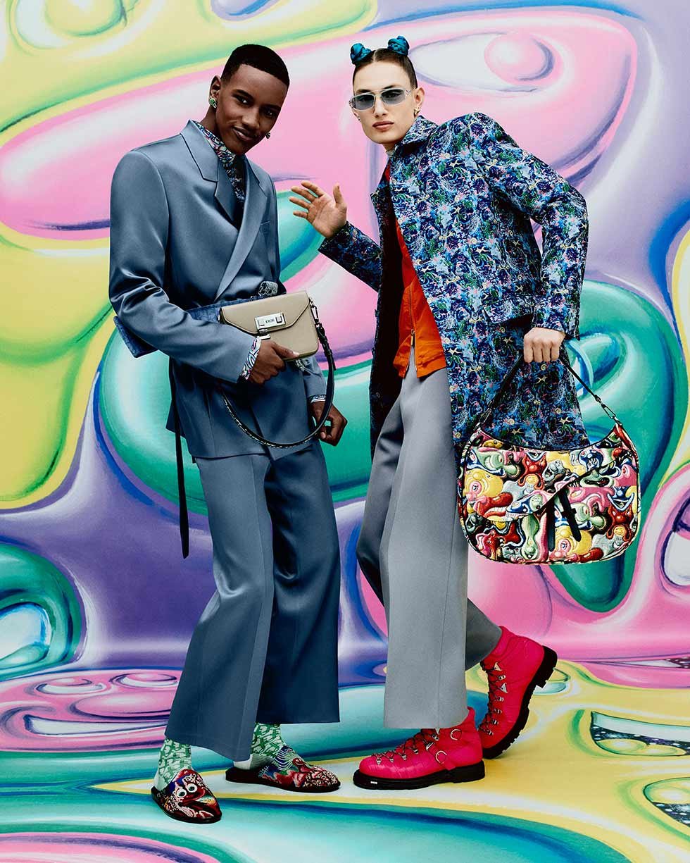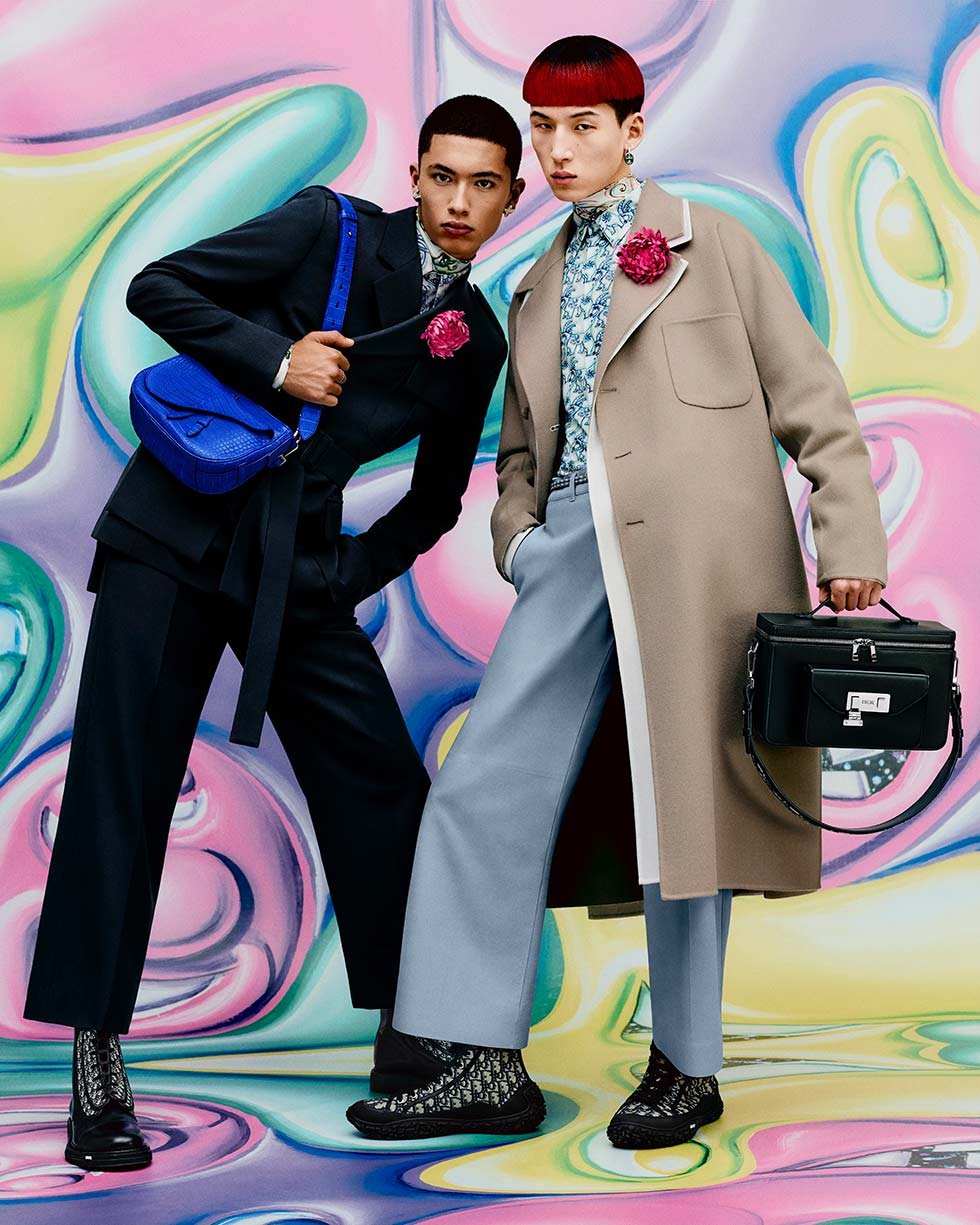 Una serie de imágenes cautivadoras mezcladas con la vitalidad del mundo del celebrado artista Kenny Scharf, forman parte de esta colección de Dior Men Fall 2021.