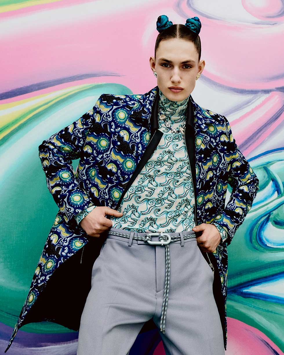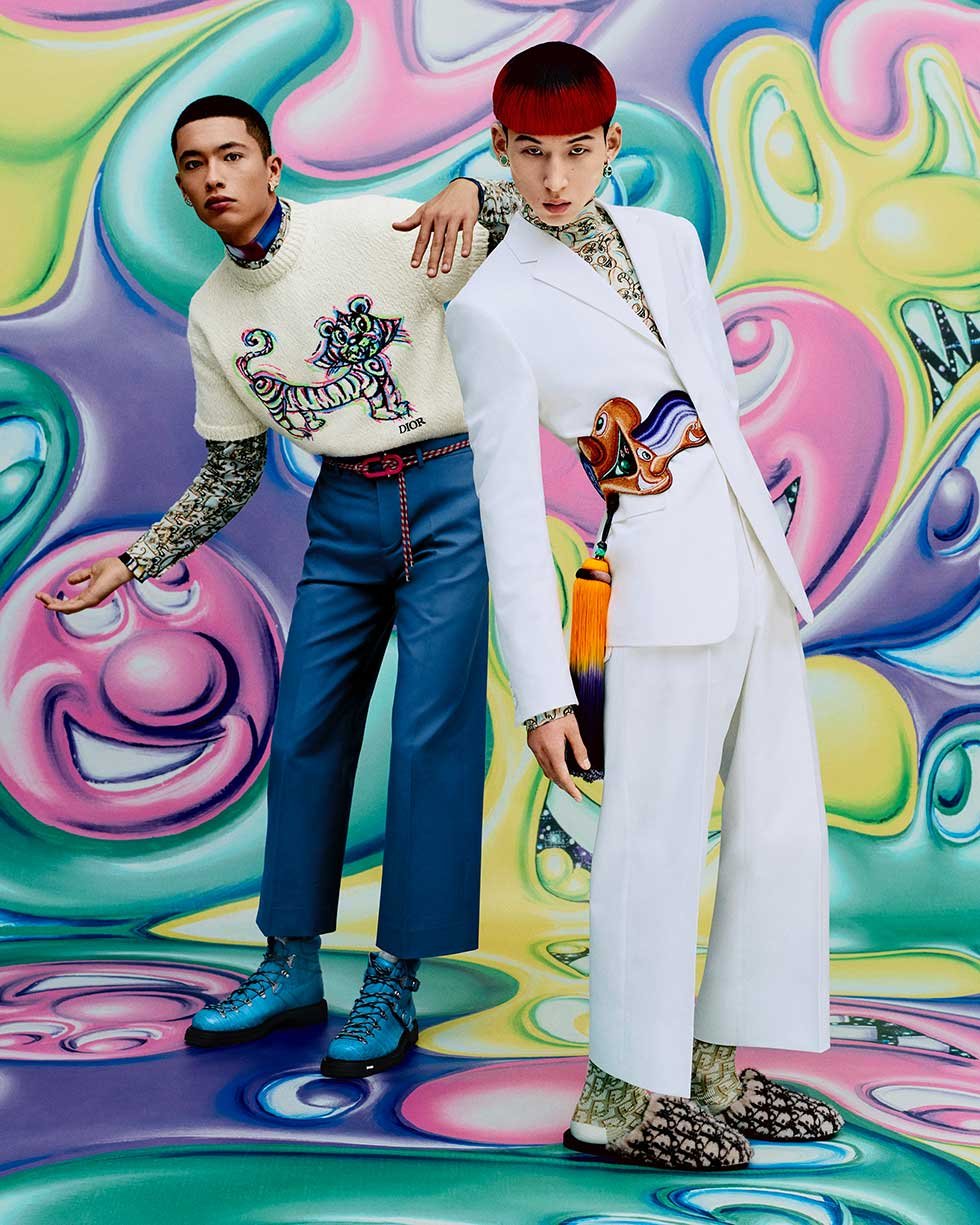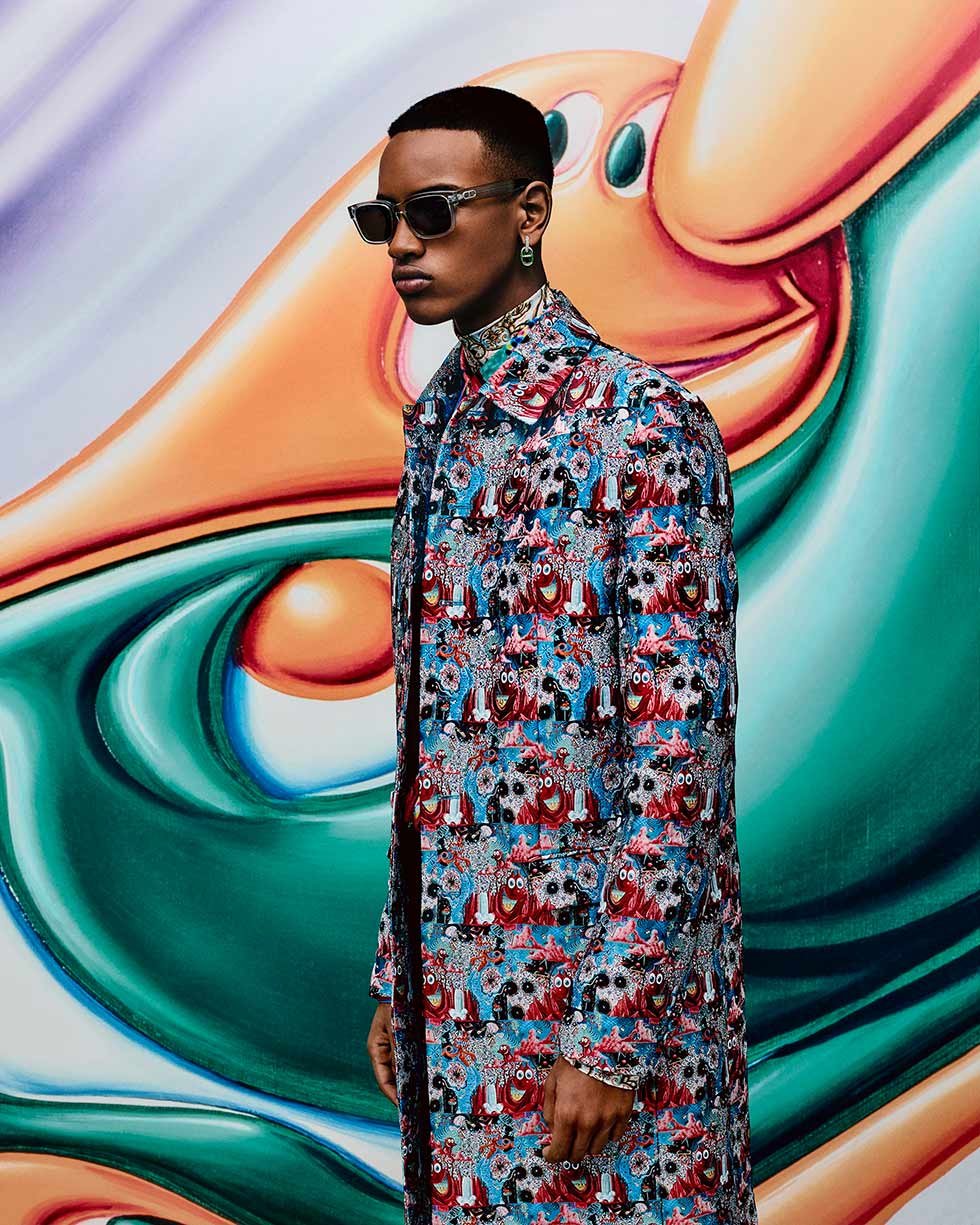 Una serie de imágenes cautivadoras mezcladas con la vitalidad del mundo del celebrado artista Kenny Scharf, forman parte de esta colección de Dior Men Fall 2021.