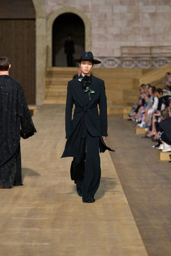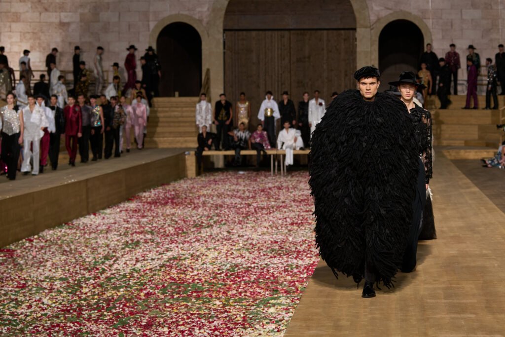 Alta Sartoria de Dolce & Gabbana se inspira en el Festival de Sant’Efisio y en el folclore sardo, tanto en la elección de motivos decorativos y materiales, como en la artesanía. Los diseños florales, ejecutados en petit point, ganchillo, o bordados con cuentas de corneta, cristales, azabache y cannetille, evocan la infiorata de Sant’Efisio, una tradición de esparcir pétalos de rosa en las calles de Cagliari durante las celebraciones del santo.