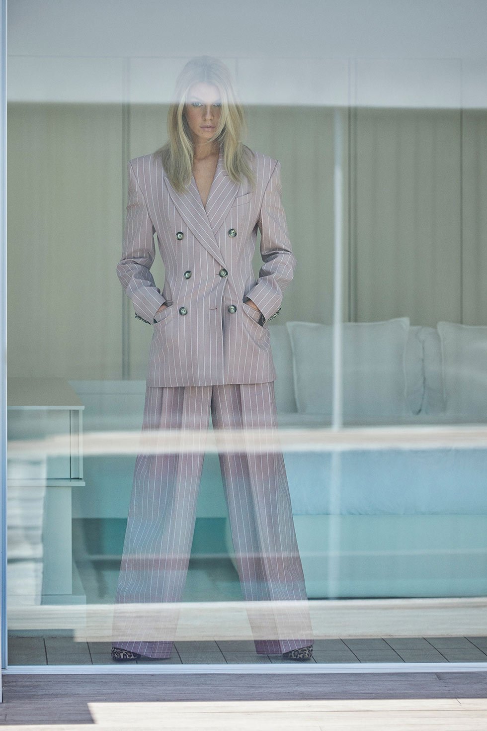 Los vemos a través de las ventanas de una casa en las colinas, descansando en el dormitorio o junto a la piscina.