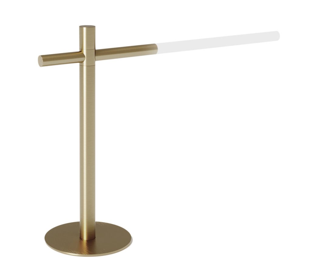 Una alternativa moderna a la tradicional lámpara de banco, Gerrit de Astro ofrece una luminosidad directa y uniforme, pero no genera deslumbramiento. Diseñada por James Bassant, director de diseño de la marca británica, como una escultura funcional, la lámpara de escritorio conserva una pureza ordenada. Sus bordes elegantes y afilados añaden un toque distintivo que favorece su apariencia limpia y minimalista. La pieza de iluminación exuda una elegancia innata y posee un valor estético indudable. La innovadora tecnología que incorpora permite el encendido sin contacto, pues se realiza mediante sensor de ondas. Con 38 cm de alto y 30 cm de ancho, está disponible en acabado dorado anodizado.