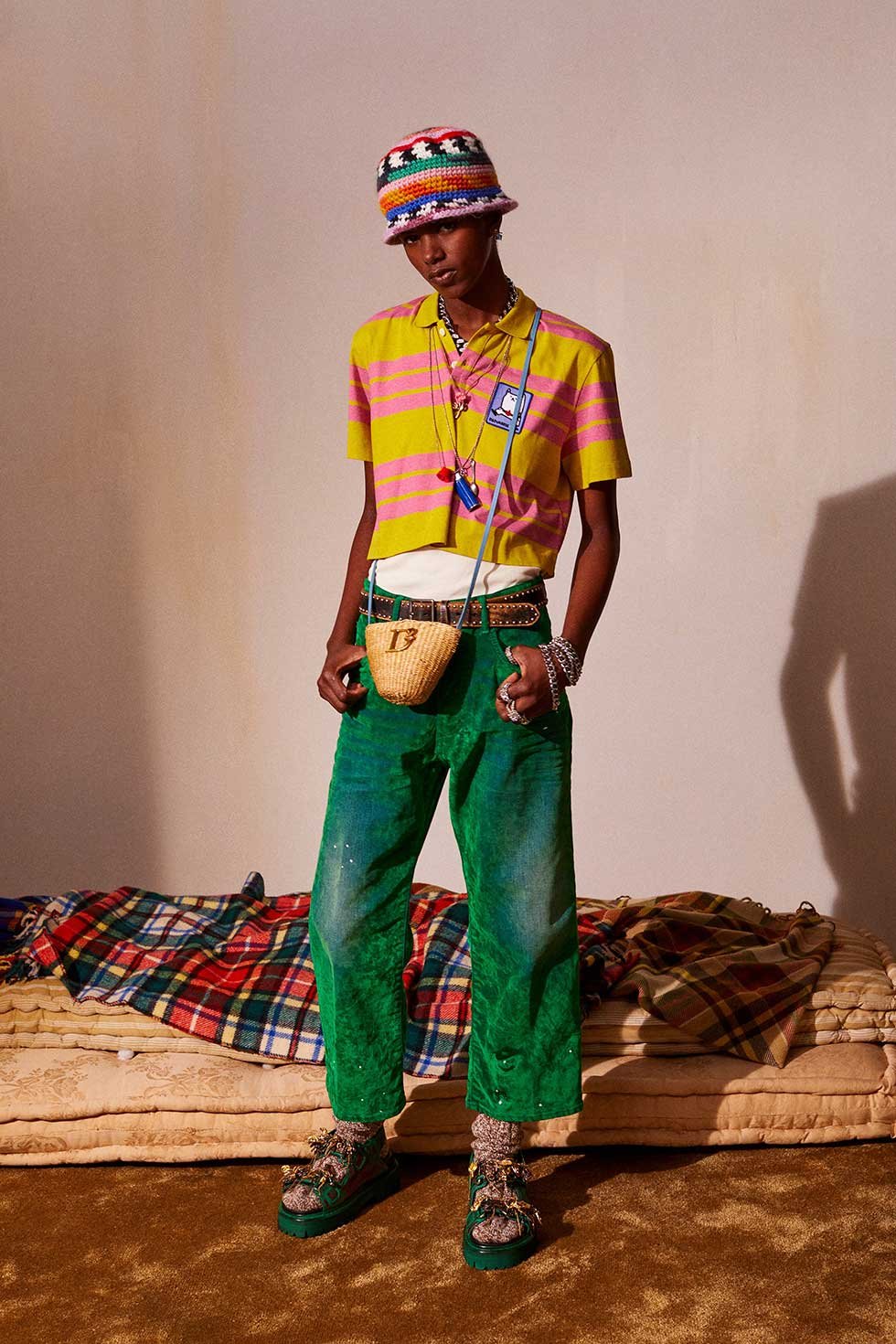 Los atuendos, muchos de ellos futuristas, mezclan el estilo libre donde graffitis pintados con aerosol, garabatos, garabatos y camuflajes se convierten en etiquetas que funcionan.