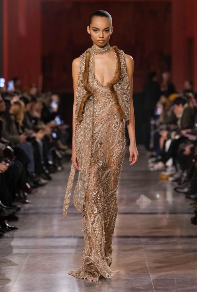 Elie Saab SS26: vestidos dorados, transparencias y elegancia