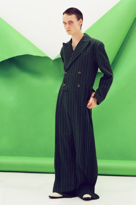 A diferencia de la mayoría de las prendas de vestir, esta pieza única cubre tanto la parte superior como la inferior del cuerpo.