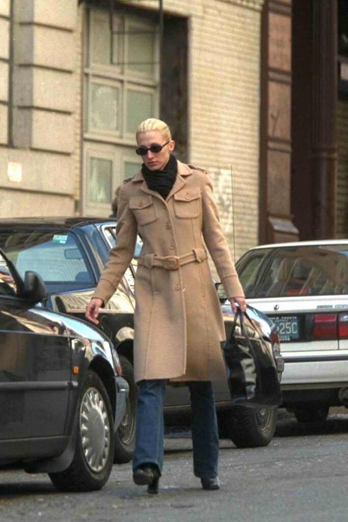 El abrigo largo en color beige era otro de sus sellos personales. A menudo lo combinaba con prendas básicas, como camisetas blancas y jeans rectos, para crear un contraste entre lo casual y lo elegante.