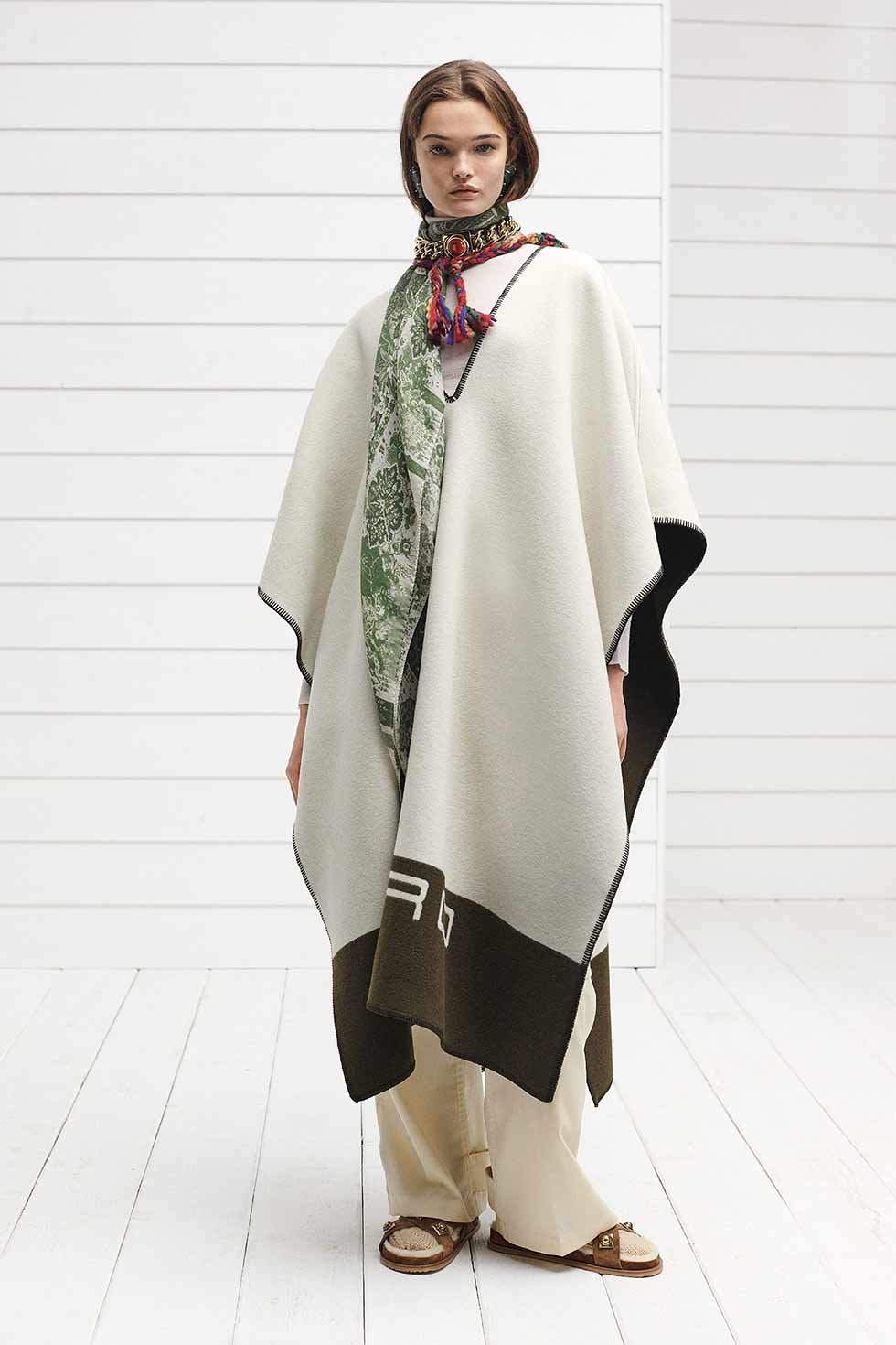 El uso extensivo del blanco en la colección evoca los paisajes invernales. La ofrenda fue rica en capas protectoras y acogedoras, así como prendas de punto de gran tamaño en intarsia y ganchillo en lugar de prendas de abrigo.