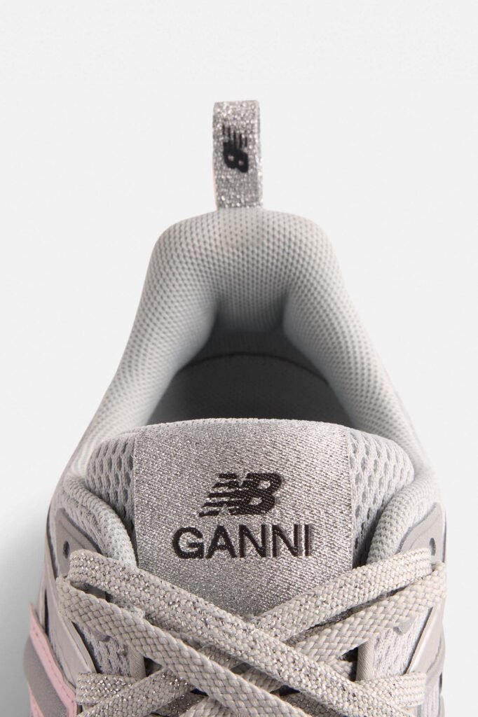 Además, los detalles de diseño no pasan desapercibidos. Estas creaciones incluyen logotipos de Ganni y New Balance en la lengüeta y el talón, destacando la naturaleza colaborativa del proyecto. El charm de mariposa, característico de Ganni, aporta un toque distintivo que combina lo casual con lo sofisticado.