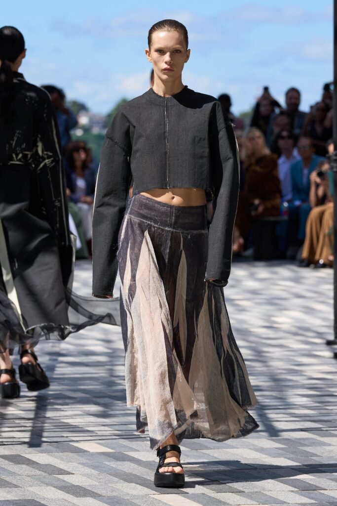 Janson WU, con la sutileza de cubrir al cuerpo con una colección que hace movimientos con la ligereza de las telas, para mostrar atuendos en colores tierra a usar en Spring Summer 2025.