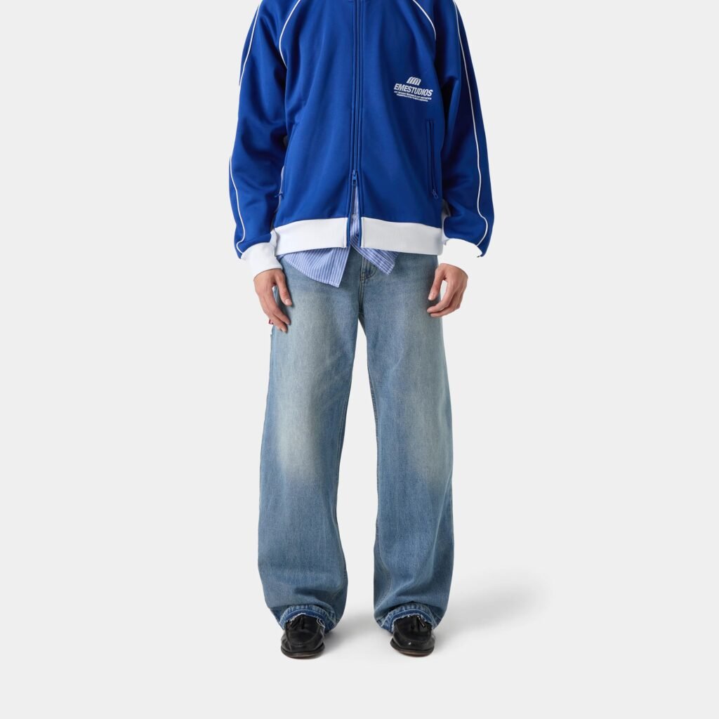 El denim rígido sigue siendo el favorito para lograr una caída impecable, pero los acabados juegan un papel clave en la evolución de esta pieza. Desde efectos encerados hasta lavados vintage con tonos desteñidos, la paleta de color también se amplía más allá del azul índigo, incorporando blancos, negros profundos y metalizados.