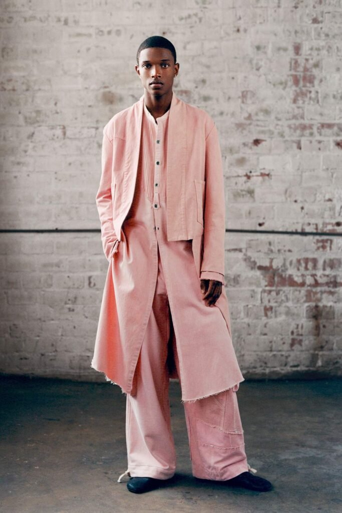 Con algunos looks bastante gender neutral, Greg Lauren propone pantalones holgados, muchas texturas ligeras en las telas y colores de la tierra: verdes, azules, blancos, cafés y rosas.