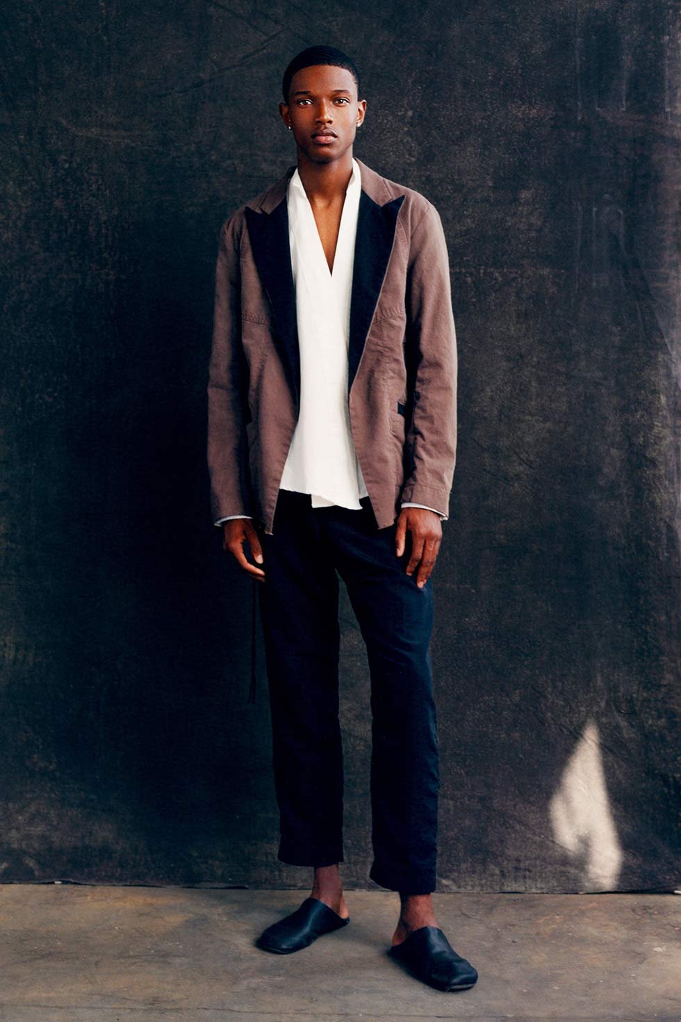 Con algunos looks bastante gender neutral, Greg Lauren propone pantalones holgados, muchas texturas ligeras en las telas y colores de la tierra: verdes, azules, blancos, cafés y rosas.