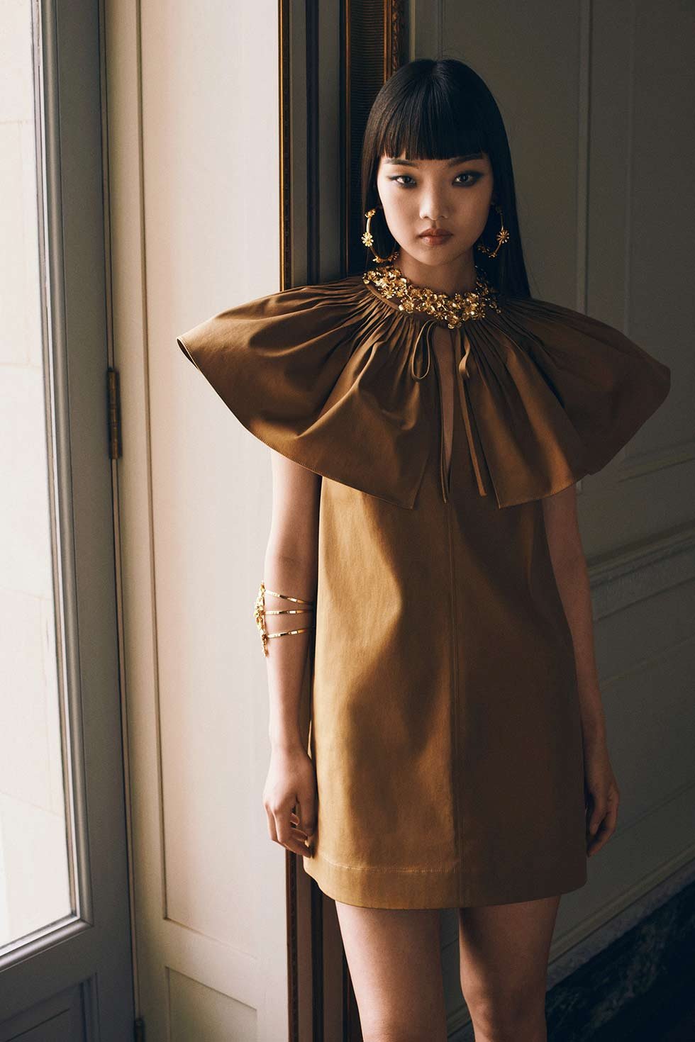 Un vestido de trinchera de seda amarilla evocaba a la propia Carolina Herrera; es una silueta que pudo haber elegido alguna vez para una fiesta en casa.