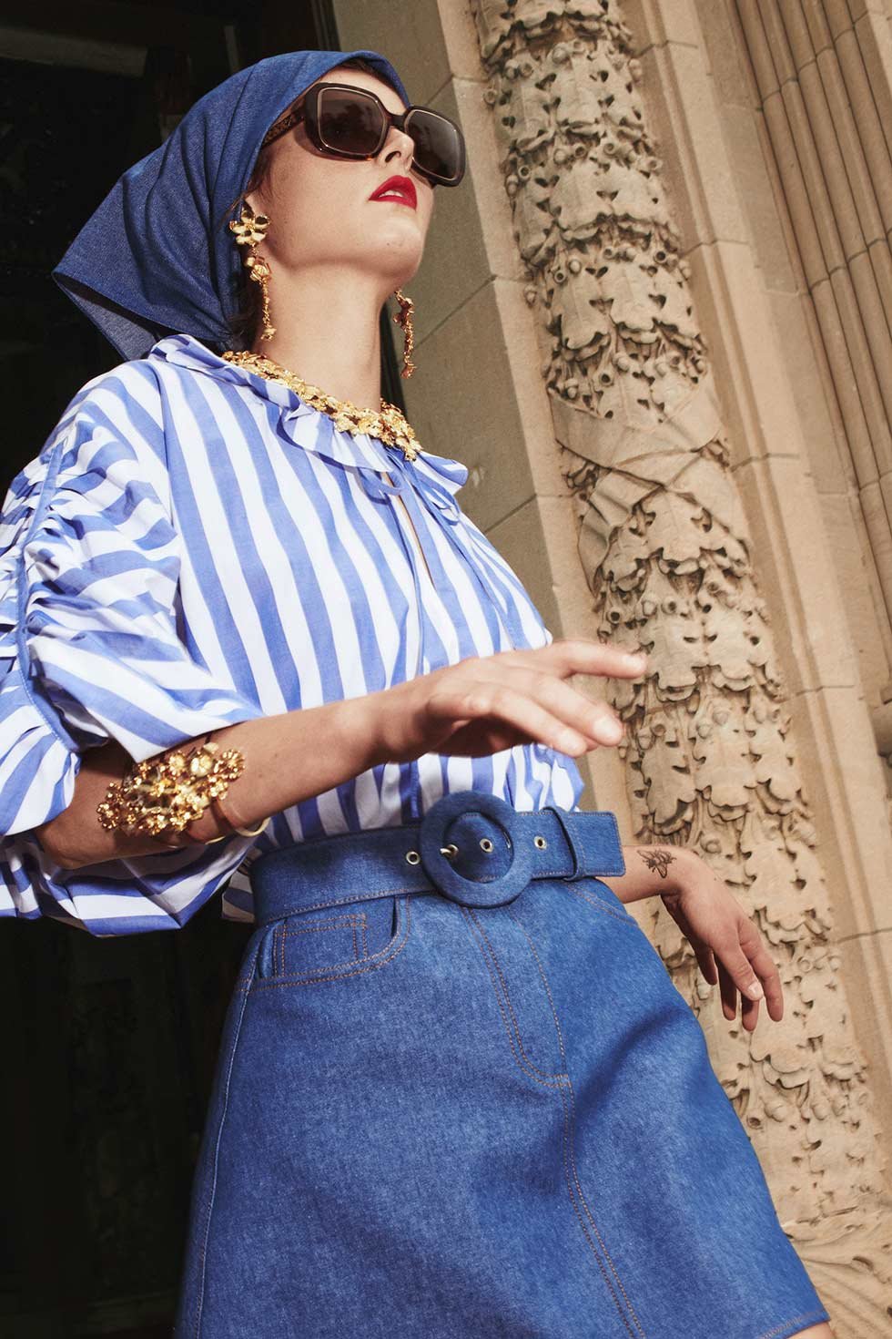 Con esto en mente, Carolina Herrera regresa a los escaparates con tejidos de punto ceñido y mezclilla nítida, así como prendas de color.