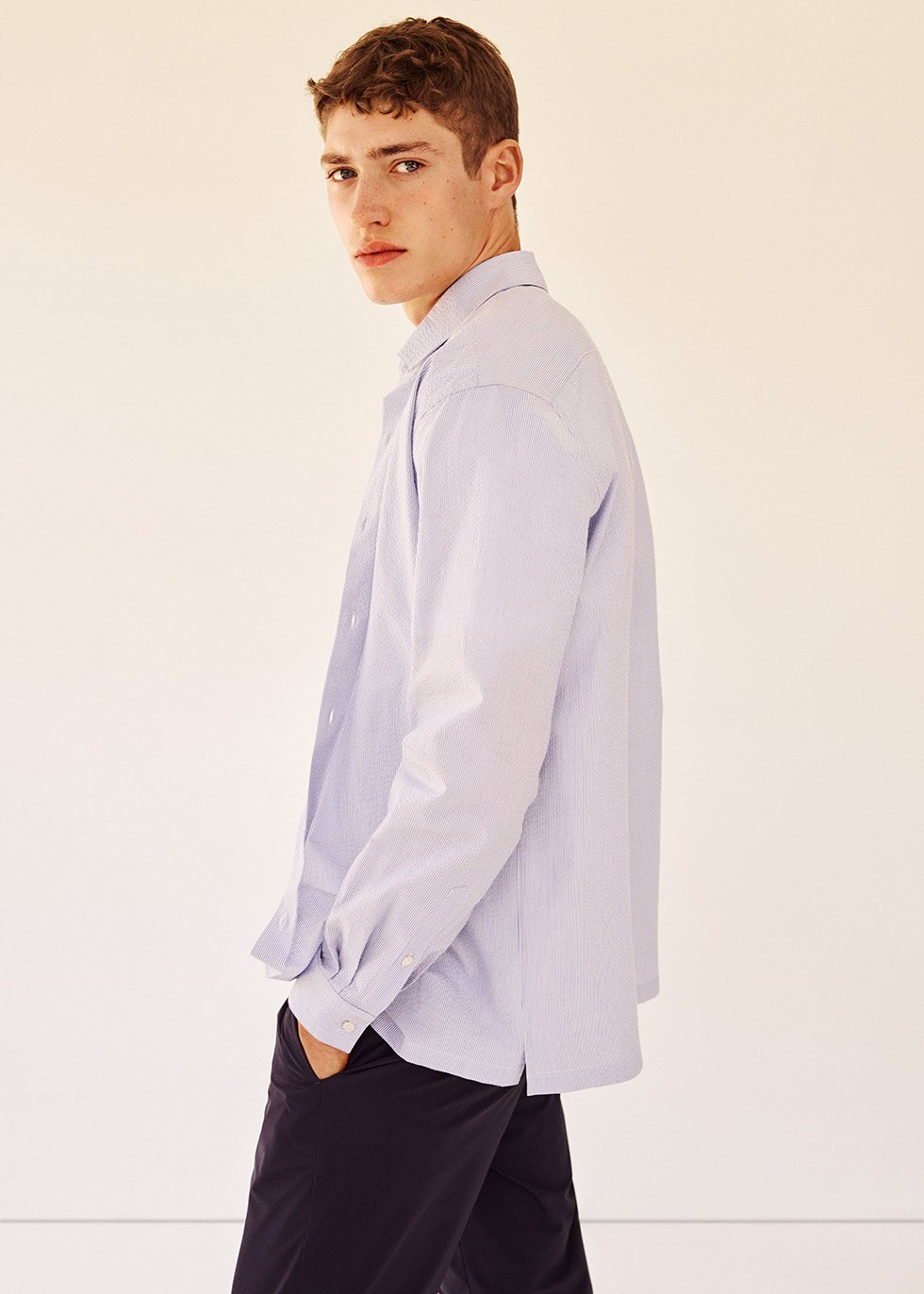 Esta línea presenta prendas en tejido seersucker, como camisas y pantalones, que son transpirables, cómodas y resistentes a las arrugas.
