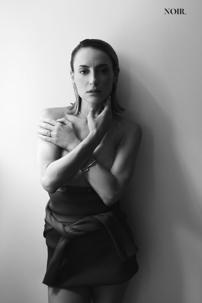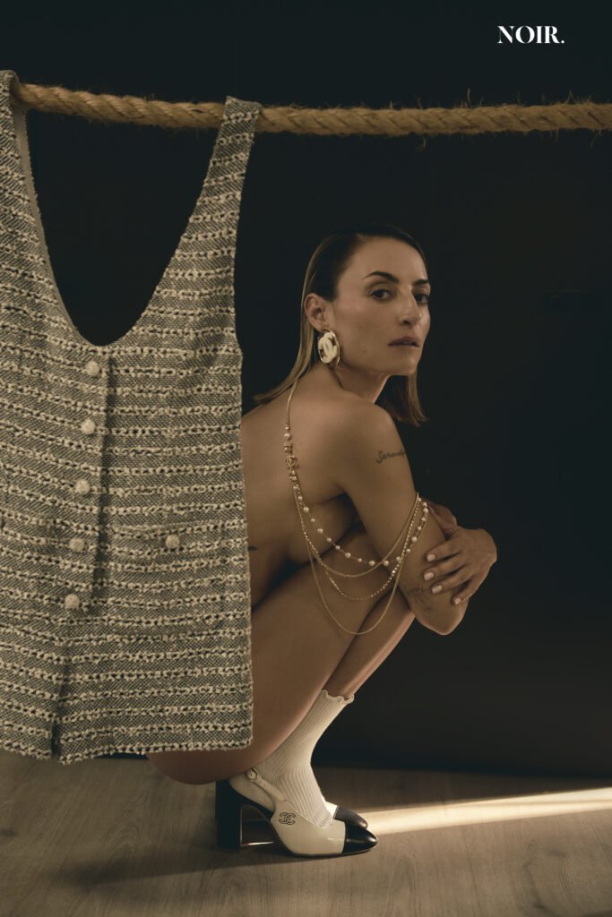 “Crecí con una mamá que es pintora, mi abuelo también —de hecho, fue director del museo Franz Mayer—. Mi papá sumó en el tema de la actuación, o sea que el arte ha estado presente en mi casa desde siempre. Tenía muchas ganas de hacer NOIR, porque, como soy de penosa, un shoot como estos es diferente. Me dejó quitar, hacer, tirar… es algo que disfruto y confío mucho. Es mucha diversión en la que me libero y dejo que proyecten su visión creativa en mí. Trabajar con gente profesional con ese ojo, es padrísimo».