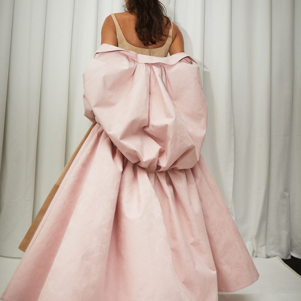 Las faldas midi se abren con una abertura en la espalda y un dobladillo de corola que baila mientras caminas con ligereza (los zapatos de tacón tienen puntas redondeadas, casi como dibujos animados, pero son misteriosamente sexys).