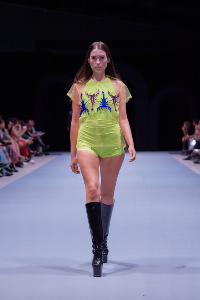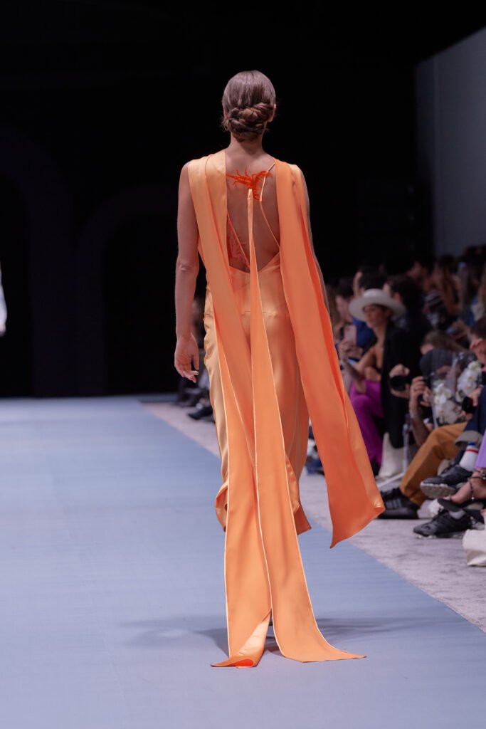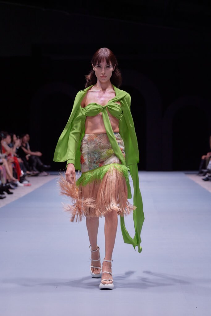 Estos animales son el motivo recurrente de la colección apareciendo en forma de acrílicos en vestidos y tops de tul casi invisibles, como si estuvieran flotando sobre el cuerpo. Para Alexia Ulibarri representan fuerzas, magia y justicia, ejes centrales de su declaración para la primavera que viene.