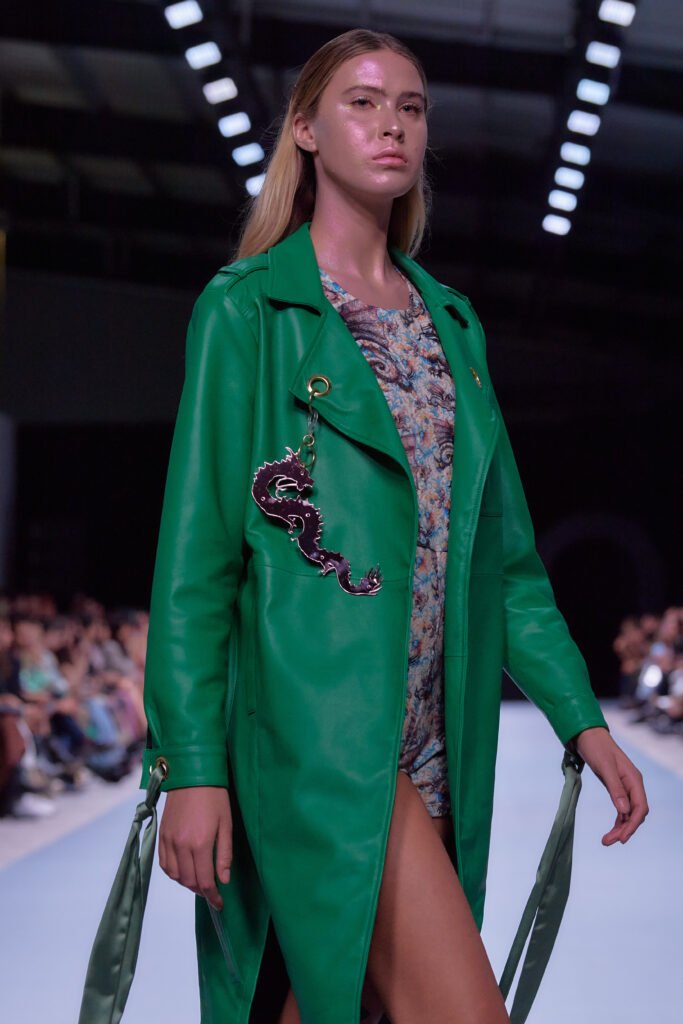 El estampado de la temporada es cortesía de la ilustradora Michelle Bukucs, quien une elementos naturalistas como flores, escorpiones y carneros con la figura mitológica del dragón.