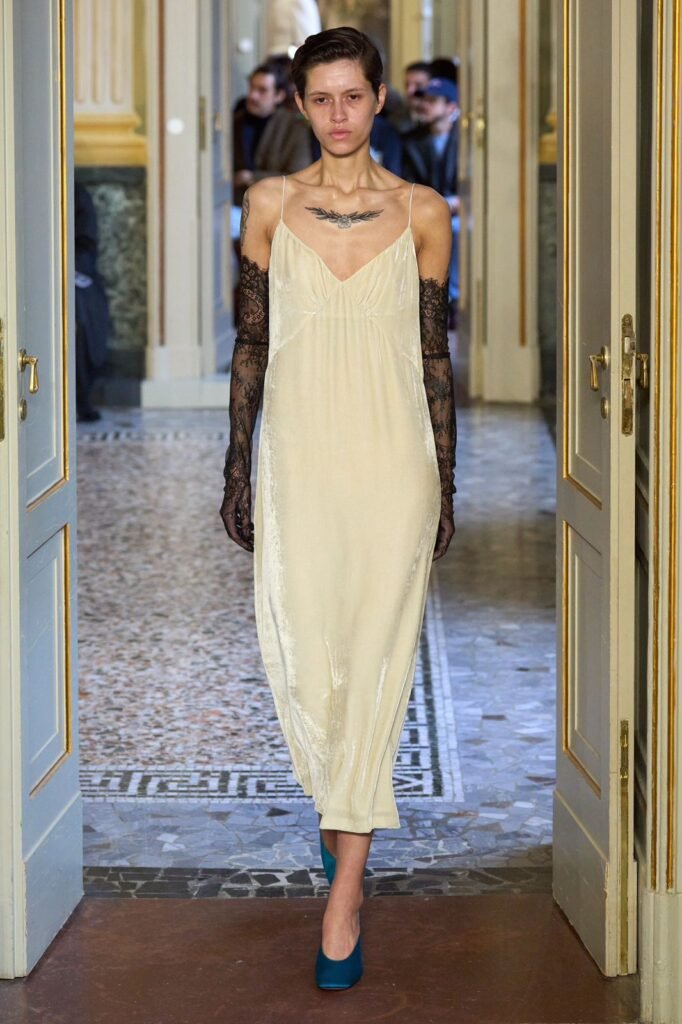 Bueno, ahora el primer indicio de esa dirección ha llegado con la colección Otoño/Invierno 2024 de Blumarine, que marca la colección debut de Chiapponi para la marca.