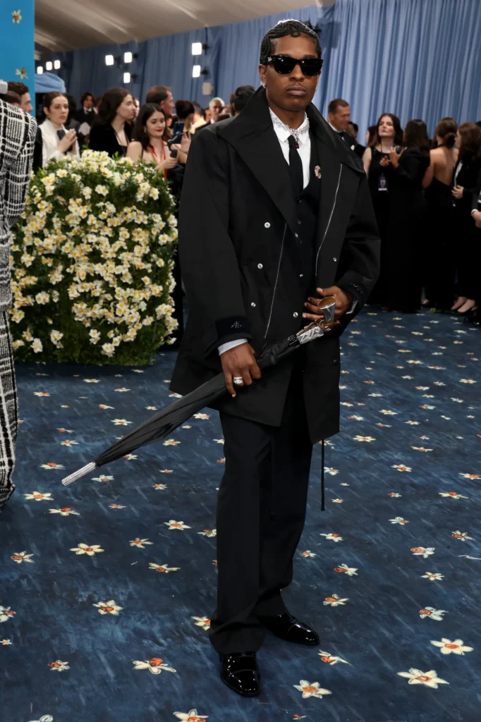 El coanfitrión de la Met Gala 2025, A$AP Rocky, sorprendió con un accesorio que acaparó todas las miradas: un paraguas con mango en forma de revólver, adornado con 90 quilates de diamantes, diseñado por Briony Raymond. Este elemento no solo complementó su atuendo, sino que también fue interpretado como una referencia a su reciente absolución en un juicio por armas, añadiendo una capa de significado a su presencia en la gala.