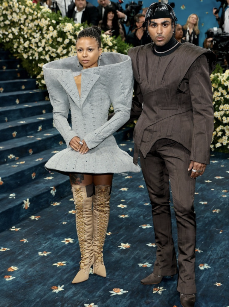 La actriz Myha’la Herrold desfiló por la alfombra azul con unas botas Timberland hasta el muslo, diseñadas en colaboración con Luar. Estas botas, inspiradas en la moda Tudor y en la estética de los «sweatpant zaddies», representaron una fusión audaz entre la tradición y la modernidad, destacando la versatilidad del estilo dandy en la actualidad.
