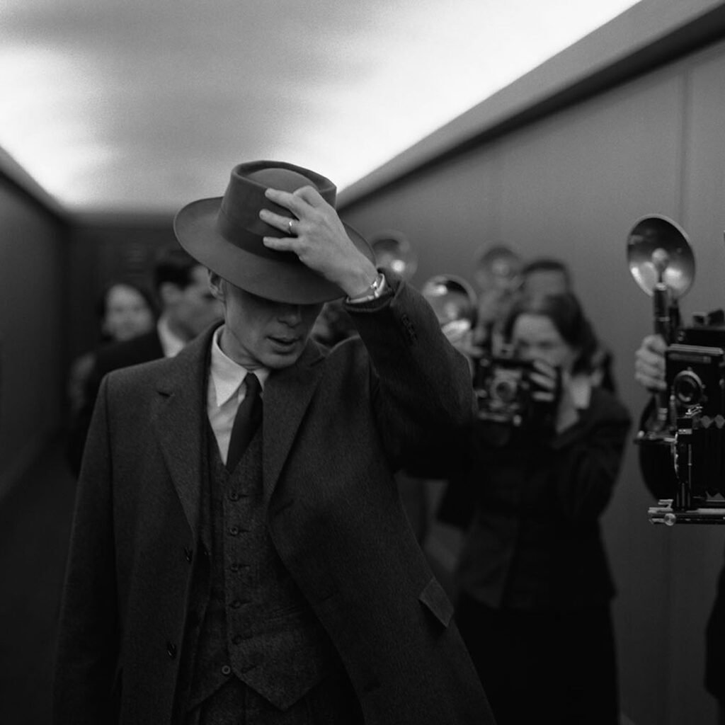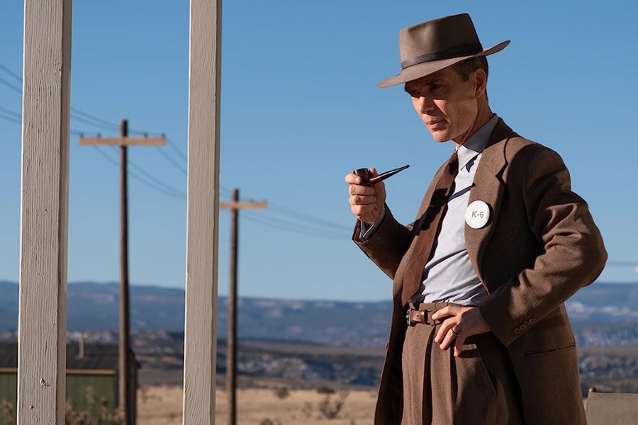 De pie en su oficina en Los Álamos, J. Robert Oppenheimer (Cillian Murphy) se coloca su particular sombrero y toma una pipa; cada acción, con cada elemento se detiene ante la cámara del director Christopher Nolan.