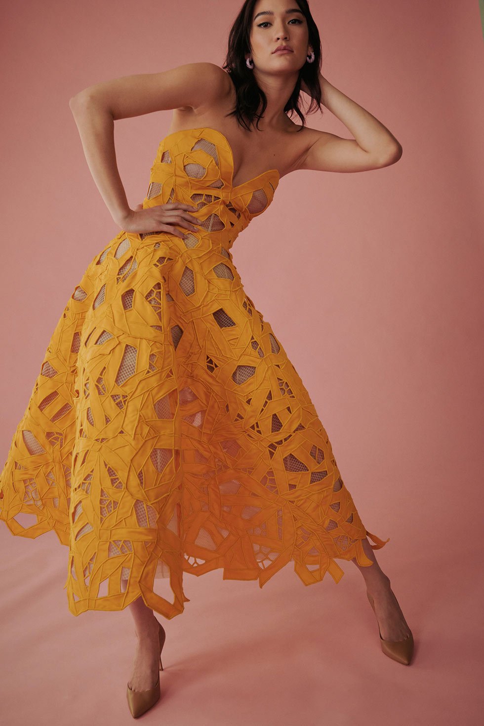 Diseñados por Laura Kim y Fernando Garcia, las líneas hacen referencia a la década de los 30, una época más sencilla pero elegante que buscaba lucir las caídas de la tela desde la cintura.