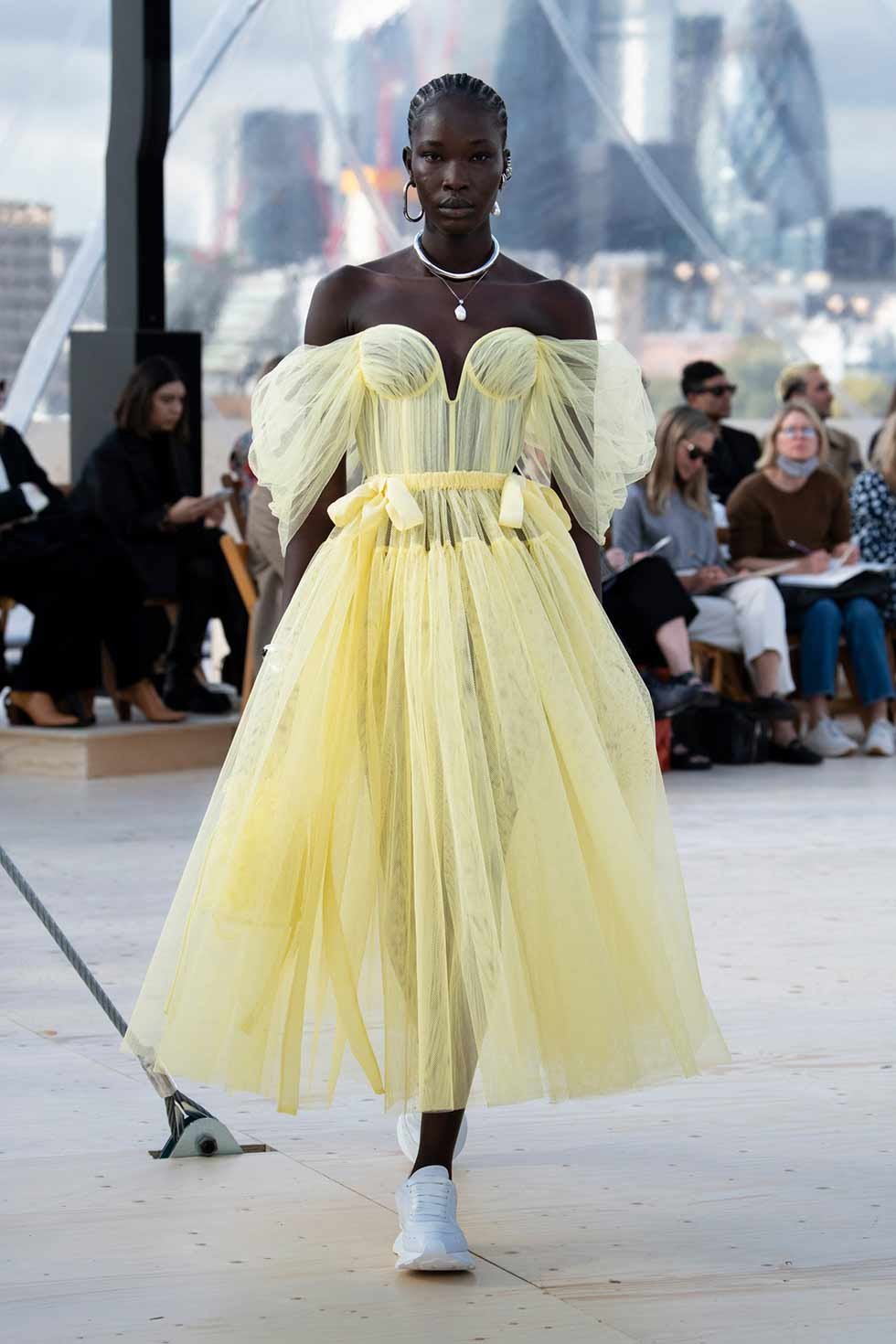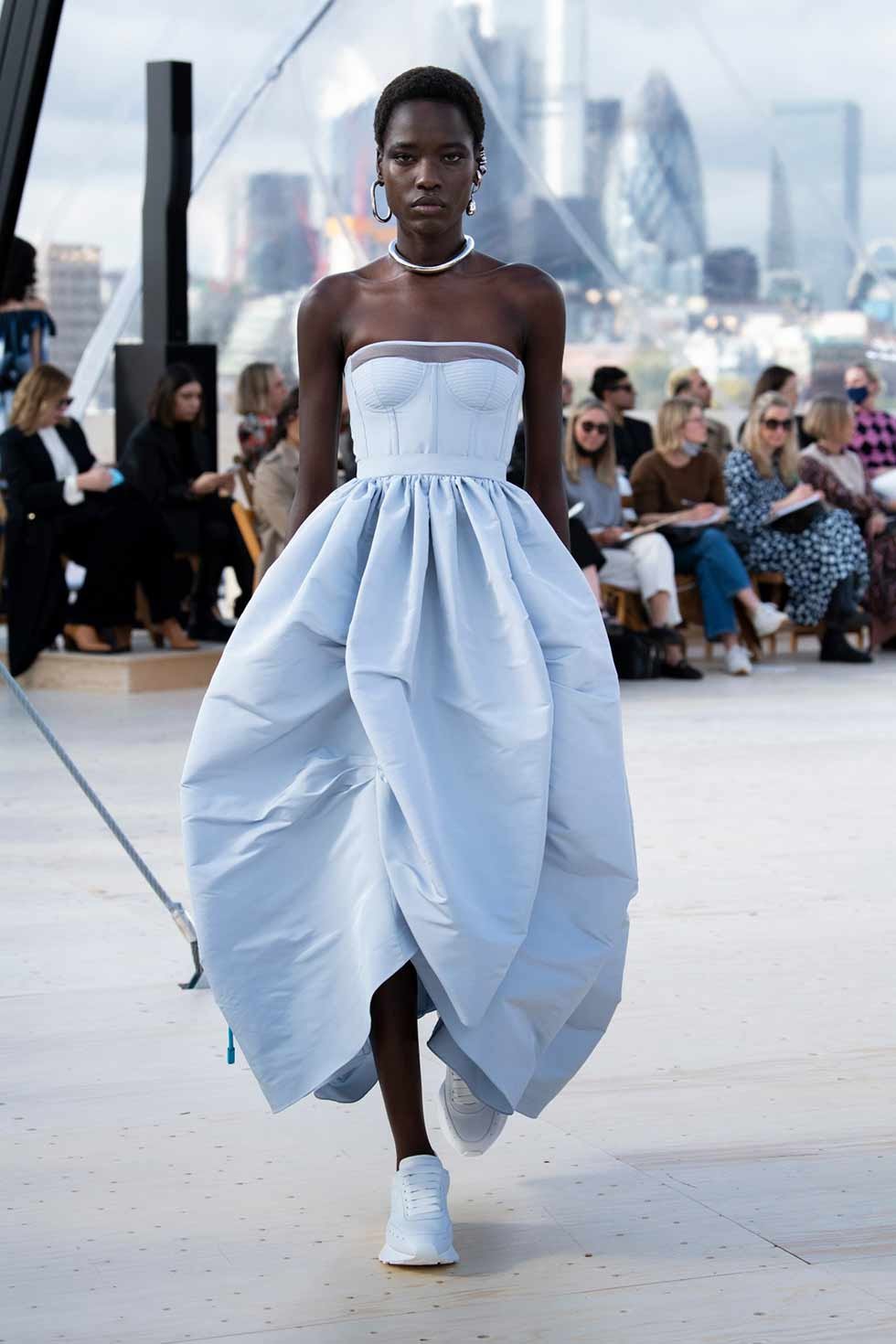 Alexander McQueen cautivó a los conocedores este martes, al presentar su nueva colección Spring 2022, poniendo como fondo a la Ciudad de Londres.