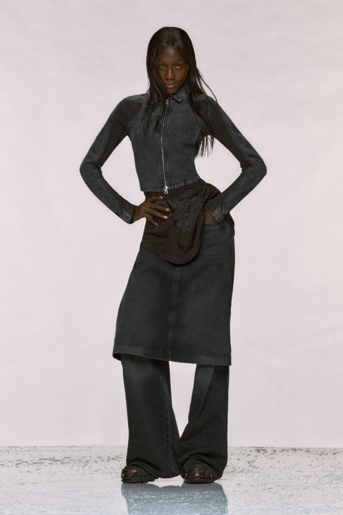 Combinaciones Clásicas: Con camisas ajustadas o crop tops para equilibrar la amplitud.