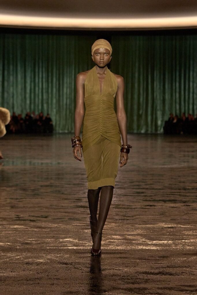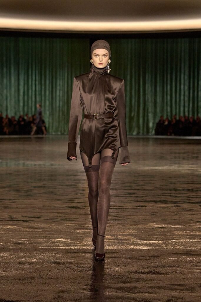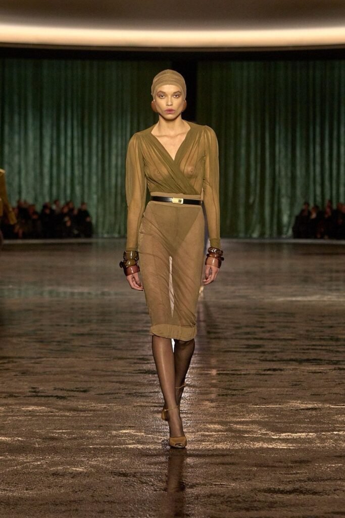 La firma francesa bajo la dirección creativa de Anthony Vaccarello presentó su colección de invierno 2024 protagonizada por  prendas transparentes. La maison, llevaba días haciendo alusiones a este runway a través de sus redes sociales, es una manera de mantenernos expectantes y un tanto emocionados por su propuesta artística.