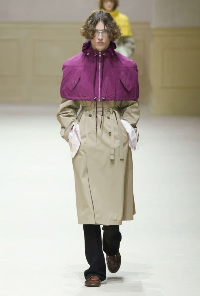 Prada demuestra que incluso en una colección masculina austera, el color puede ser protagonista, capaz de cambiar la percepción de una silueta y generar emoción inmediata.