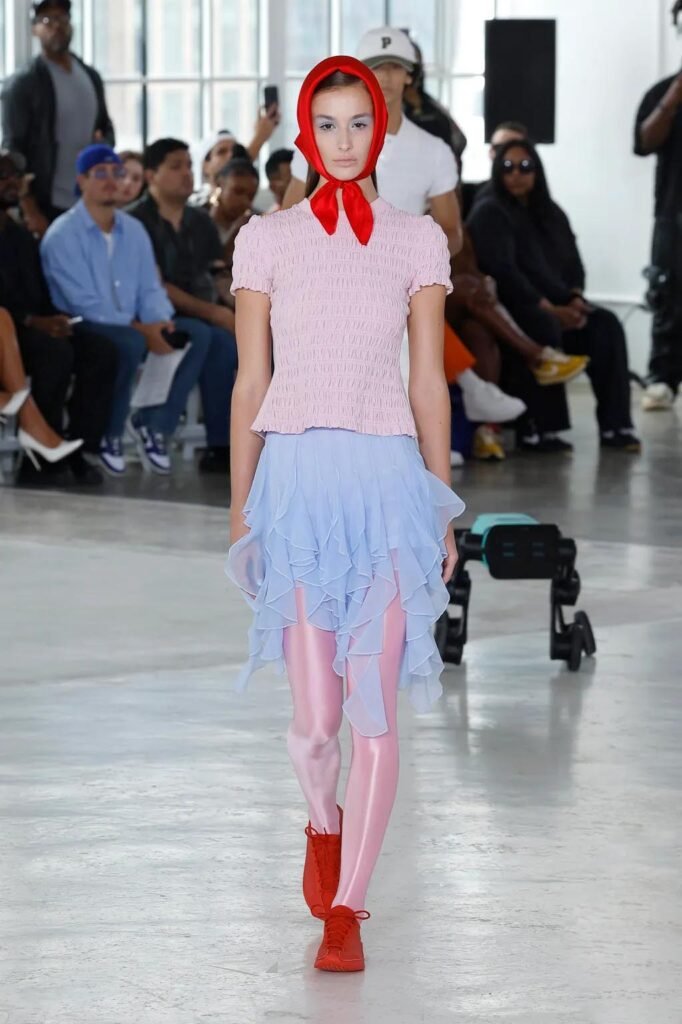 Antes de que las luces iluminaran la pasarela en el Spring 2026 de Private Policy, ocurrió algo significativo: Siying Qu, co-directora creativa, decidió dar un paso al lado. Queda Haoran Li solo al mando creativo. Su visión ahora enfatiza un nuevo discurso: sobre nosotros, la tecnología, los rostros detrás de la interfaz. Qu planteó una pregunta que resuena más allá de la silueta: ¿Podemos ser amigos de la inteligencia artificial? Pero no esperes que la colección traiga códigos cibernéticos o vestigios futuristas visibles. Li prefiere la insinuación, el gesto, el subtexto.