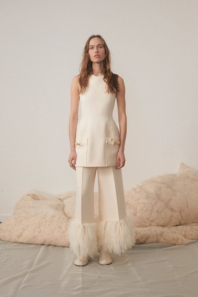 Una de las peculiaridades que vemos en la selección de atuendos para Renata Notni es que se busca el contraste de su piel. En pasarela quienes portan las salidas son pieles cálidas, razón por la que el contraste de colores y la sintonía en siluetas ya sea en capaz o en tejidos y plumas hacen de Renata una de las actrices más estilizadas para esta celebración.