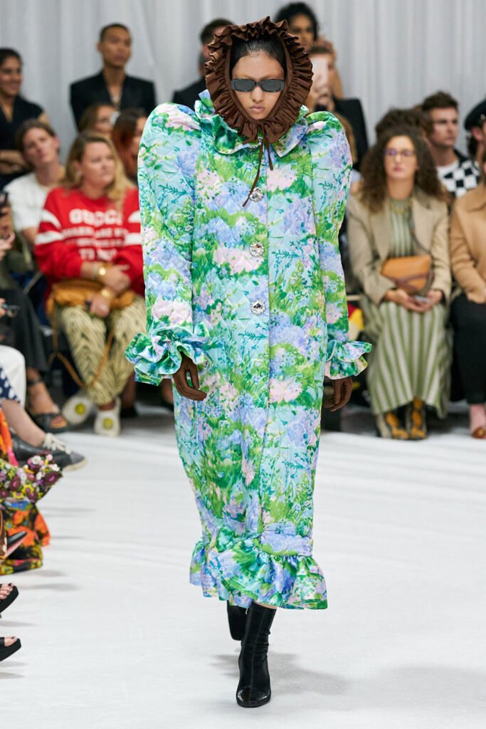 Con estampados de colores vivos un globo lleno de flores en el centro de su espectáculo, y una audiencia llena de celebridades, Richard Quinn fue aplaudido varios minutos al final del show.