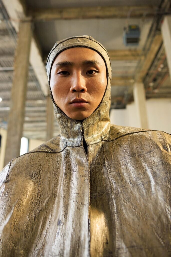 Las plataformas estuvieron presentes, capas como si fuéramos parte de una película de guerra de dioses. Hombreras exageradas, pantalones plateados, cuellos redondos con tintes de astronauta, túnicas y tocados en color dorado mate de media luna posados en la cabeza de los modelos para fortalecer el runway que lleva por nombre “Hollywood”.