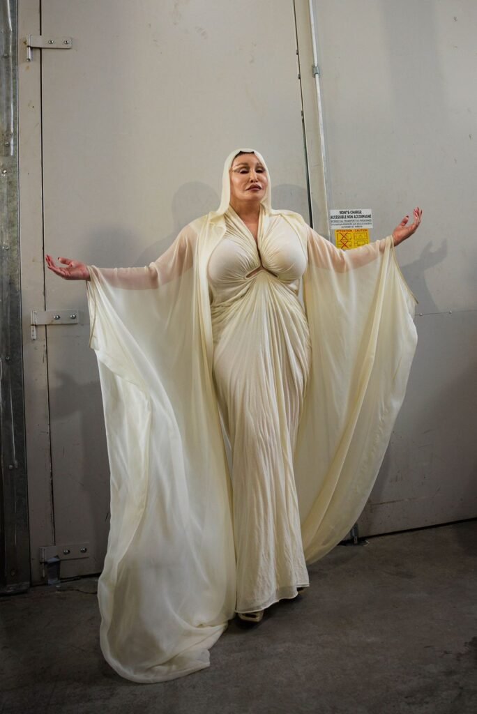 Cuando una fumarola blanca se asoma en medio de las escaleras del Palais de Tokyo solo puede significar una cosa: habemus nueva colección de Rick Owens. El clero del universo Owens desfila entre sus fieles para dar paso a una propuesta que se aleja de la oscuridad —por lo menos en telas y no en esencia—.