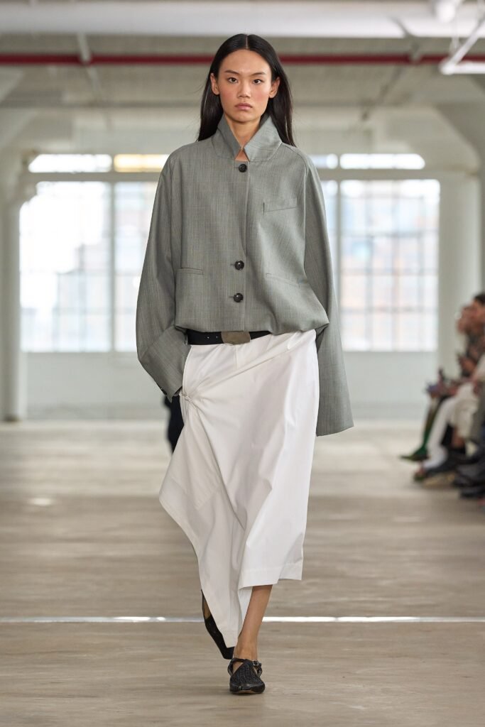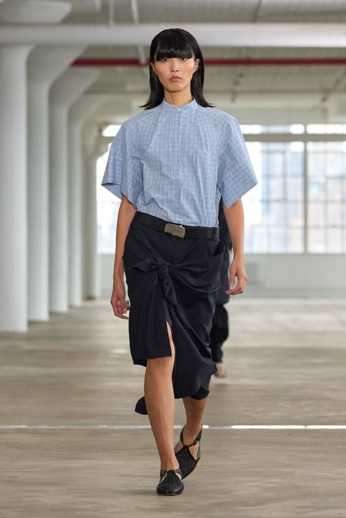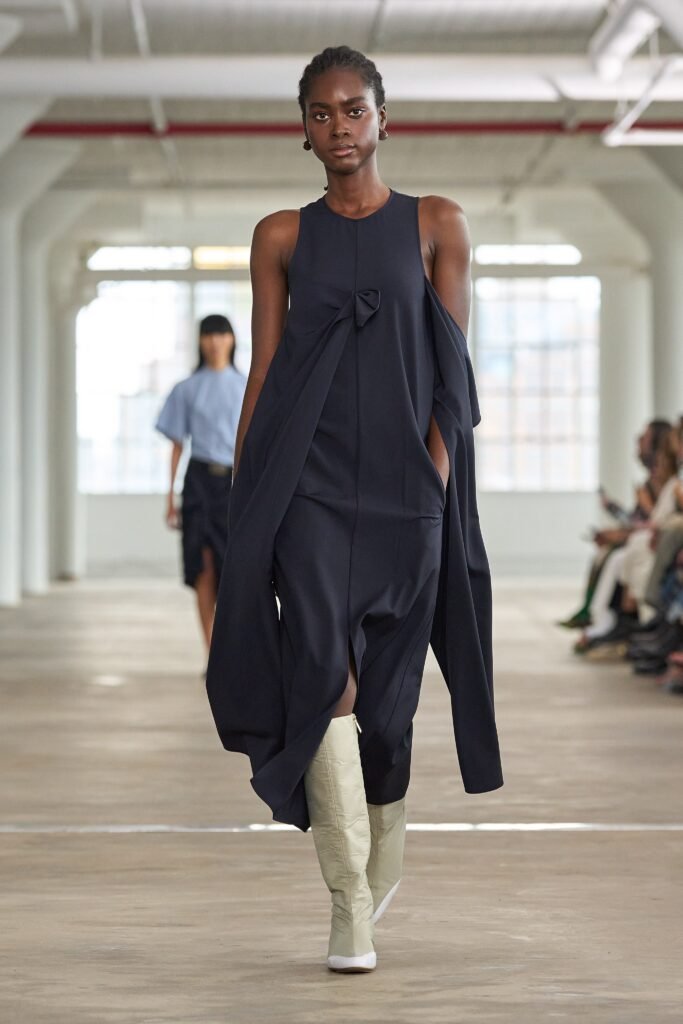 El desfile se celebró en un lugar emblemático que memoraba las bodegas industriales de la ciudad. Se presentaron piezas en tonos neutros, como beige, blanco y negro, que resaltaban la simplicidad y la elegancia. Tibi se caracterizó por sus tejidos ligeros, ideales para los días más cálidos, y por las líneas limpias de sus diseños, que reflejan el estilo sobrio que define a la marca.