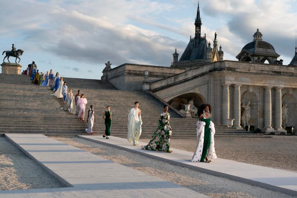 Para el desfile de Alta Costura Valentino Otoño/Invierno 2023-24, un Château es, para el Director Creativo Pierpaolo Piccioli, una entidad metafísica, un contexto que puede ser recontextualizado.