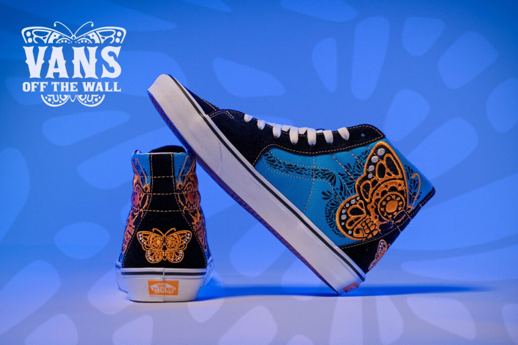 Cada pieza de la colección presenta diseños inspirados en los colores y patrones vibrantes de la mariposa Monarca, elementos clásicos como la calavera combinando el arte y la tradición con el estilo icónico de Vans.